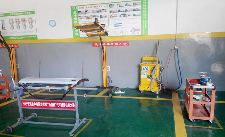 2013年云南省中職汽車維修與應用技能大賽-------龍神賽前培訓指導 2013年1月11日,2013年云南省汽車維修技能競賽指導在云南省玉溪工業財貿學校如期進行,本次賽前培訓指導由云南省教育廳主辦,昆明松騁汽修設備有限公司(云南省教育廳校企合作示范企業)協辦。共設汽車車身修復、車身涂裝、車輪定位、二級維護、基本技能、空調檢測五個培訓項目,我司劉老師受邀請到云南省玉溪工業財貿學校為參賽選手指導車身涂裝。