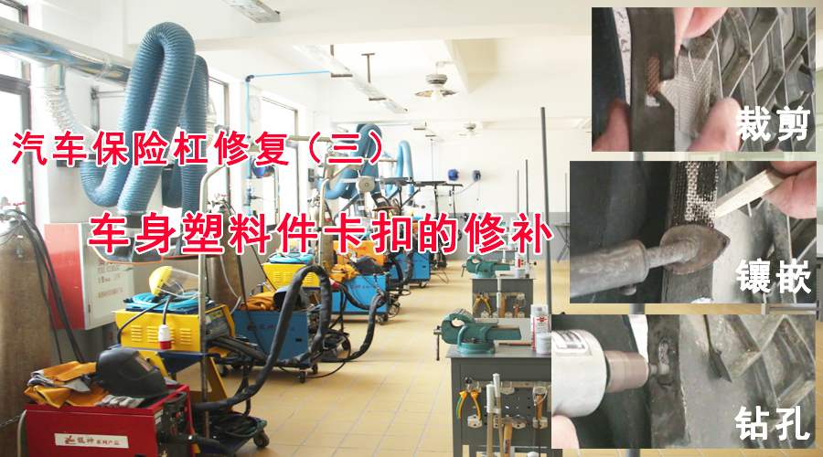 汽車保險(xiǎn)杠修復(fù)(二)塑料件的穿孔修復(fù) 2014-11-28 20388 汽車車身穿孔修復(fù)的前期準(zhǔn)備非常重要,必須嚴(yán)格按照工藝流程,將修復(fù)孔表面和周邊打磨平整、清潔干凈,而成本低、修復(fù)速度快、貼敷粘連使用設(shè)備少的無(wú)繡加固網(wǎng)焊接修復(fù)技術(shù)是應(yīng)對(duì)穿孔修復(fù)的有效手段。塑料件的穿孔修復(fù)詳細(xì)步驟見(jiàn)下圖。(以下步驟中用到的工具:龍神電動(dòng)氣動(dòng)鉆、龍神打磨機(jī)、龍神修補(bǔ)網(wǎng)、修補(bǔ)膠條、電烙鐵)