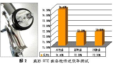 吉尼斯HTE高霧化噴槍采用科學的霧化通道設計和精密的霧化孔徑加工工藝,只要2bar的壓力按照傳統(tǒng)使用條件,就可以噴出卓越的霧化效果,而且耗氣量只有290-340/分鐘,油漆傳遞效率高達70%以上(見圖2),大大降低了飛濺漆霧對人員及環(huán)境的危害,降低噴漆車間的營運成本,是真正的節(jié)能環(huán)保產品。