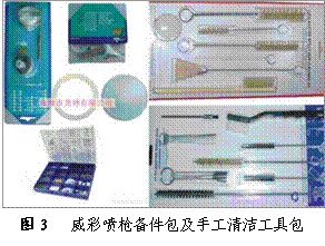 吉尼斯HTE高霧化噴槍采用鋁合金鑄造槍身、不銹鋼噴嘴和單一銅質閥門,而且隨配有專業(yè)的備件包和清潔工具包(見圖3),其使用價值和耐用程度遠勝于其它品牌同級產品;同時吉尼斯HTE高霧化噴槍減少了內部塑膠墊圈、加粗了所有旋鈕螺紋,這也大大減少了壞損幾率。