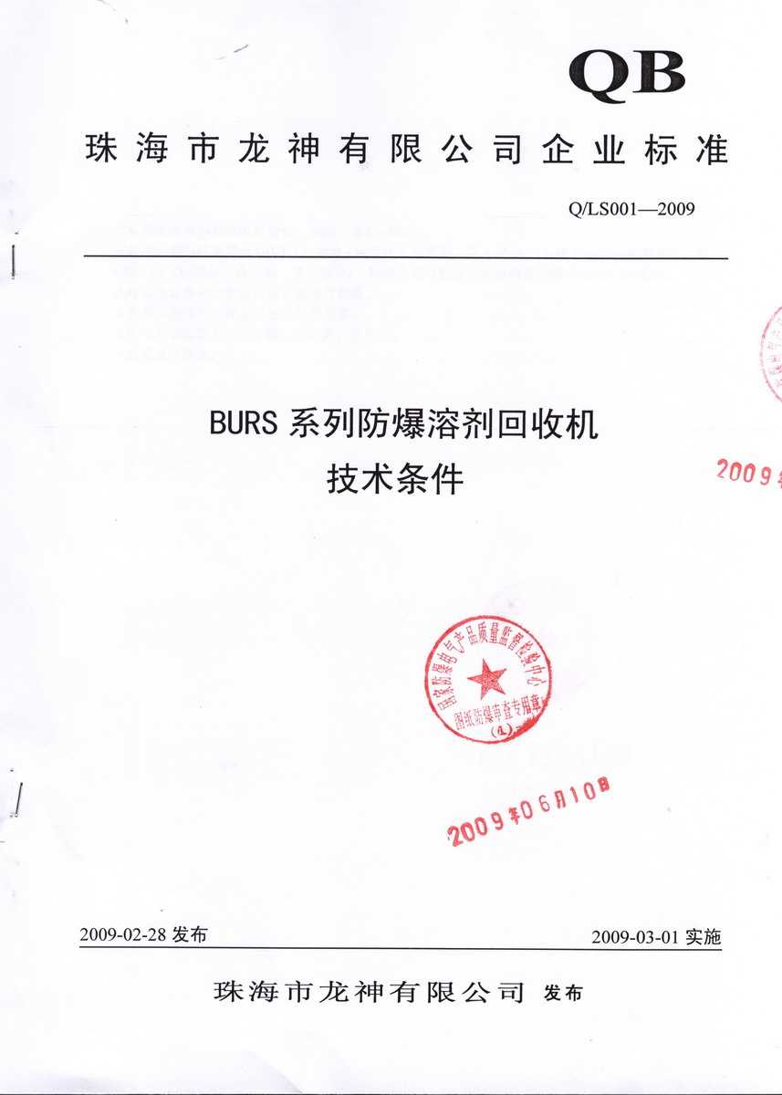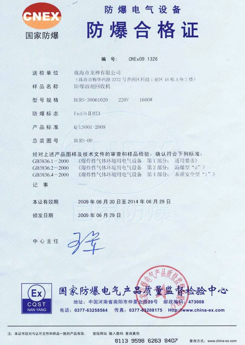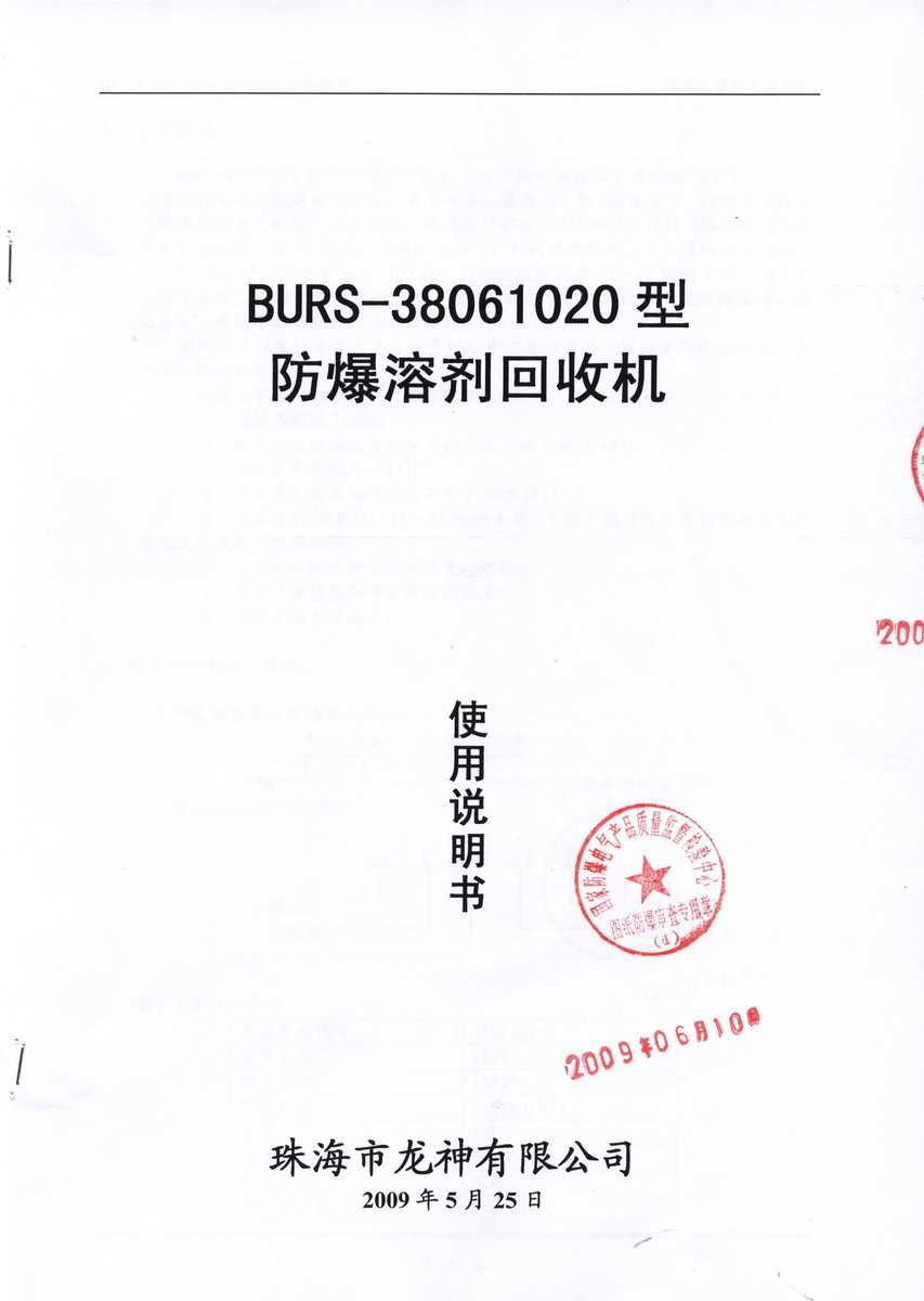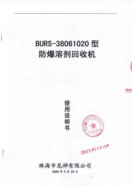 防爆認(rèn)證 防爆溶劑回收機(jī)防爆合格證 BURS系列防爆溶劑回收機(jī)技術(shù)條件 BURS-38061020型防爆溶劑回收機(jī) 使用說明書 BURS-38061020型防爆溶劑回收機(jī) 圖紙資料 (以上圖片均可點(diǎn)擊放大) 2012-11-27 34639